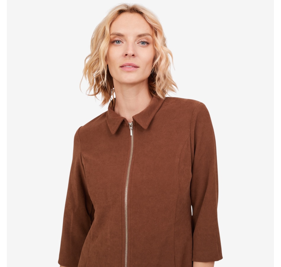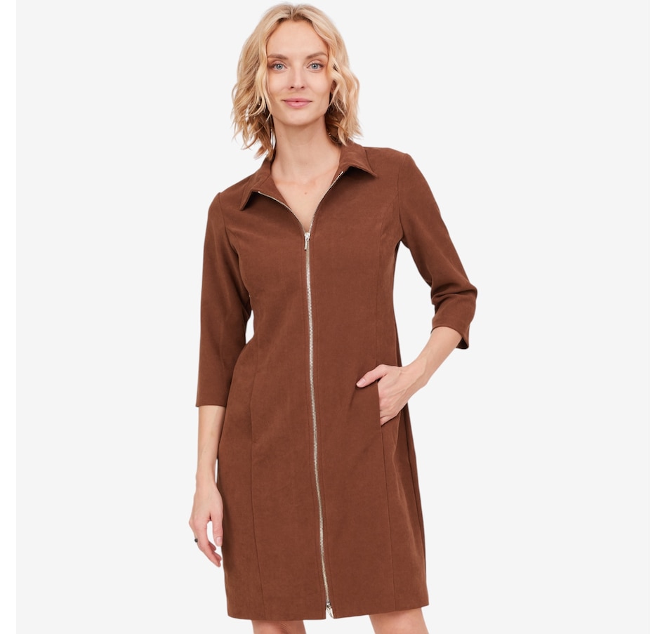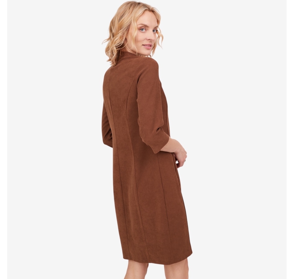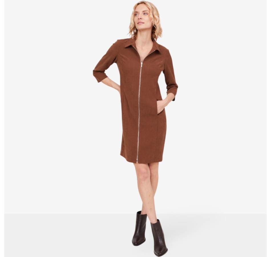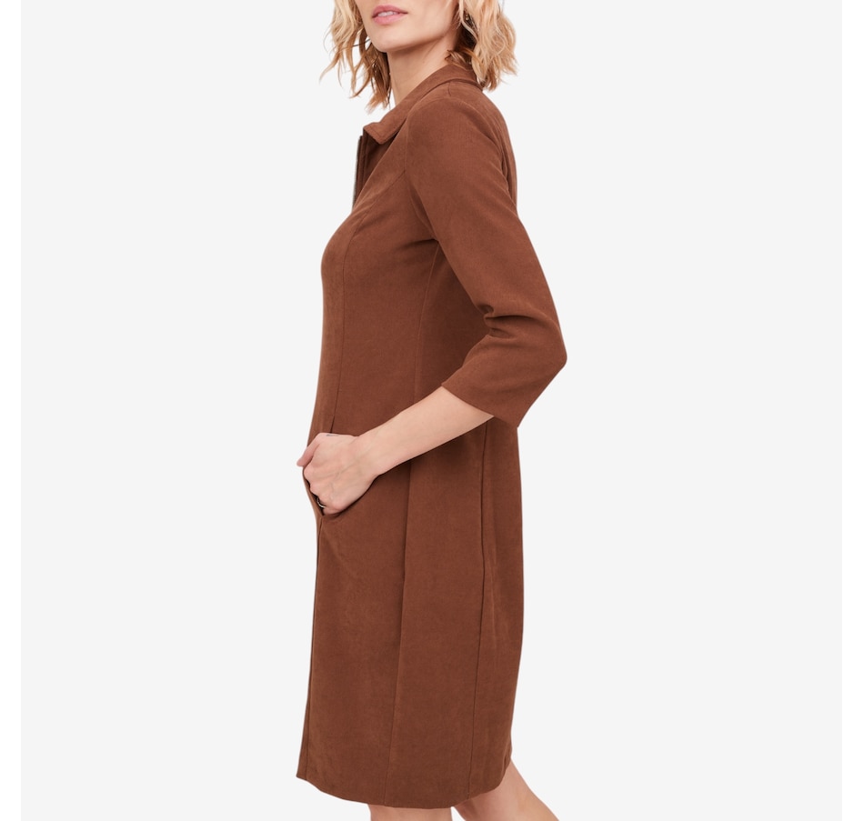 Elevate your fall look in beautiful style wearing this duomo faux suede dress from Legacy. It comes in a semi-fit, and finishes with an attractive collar.