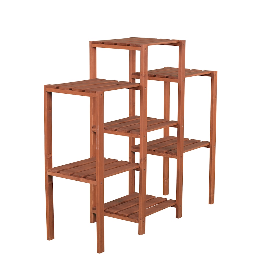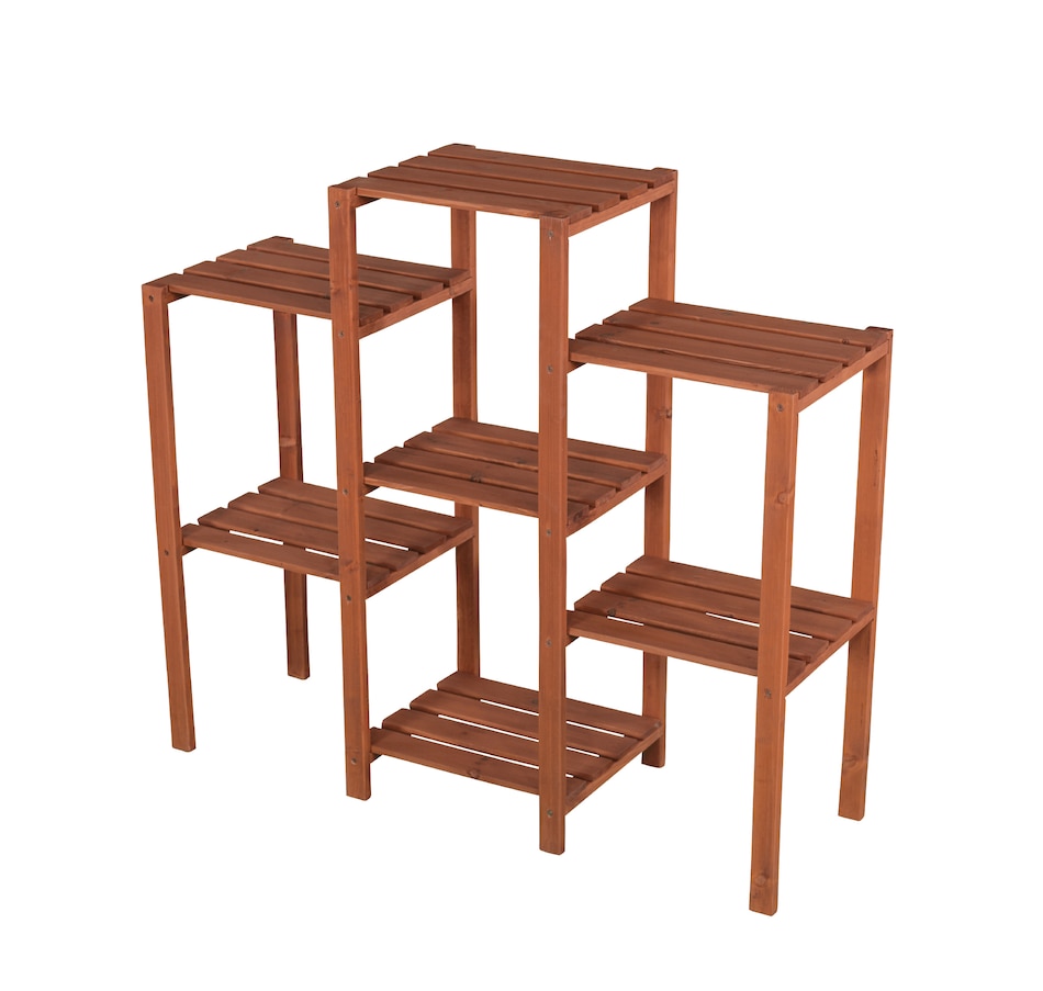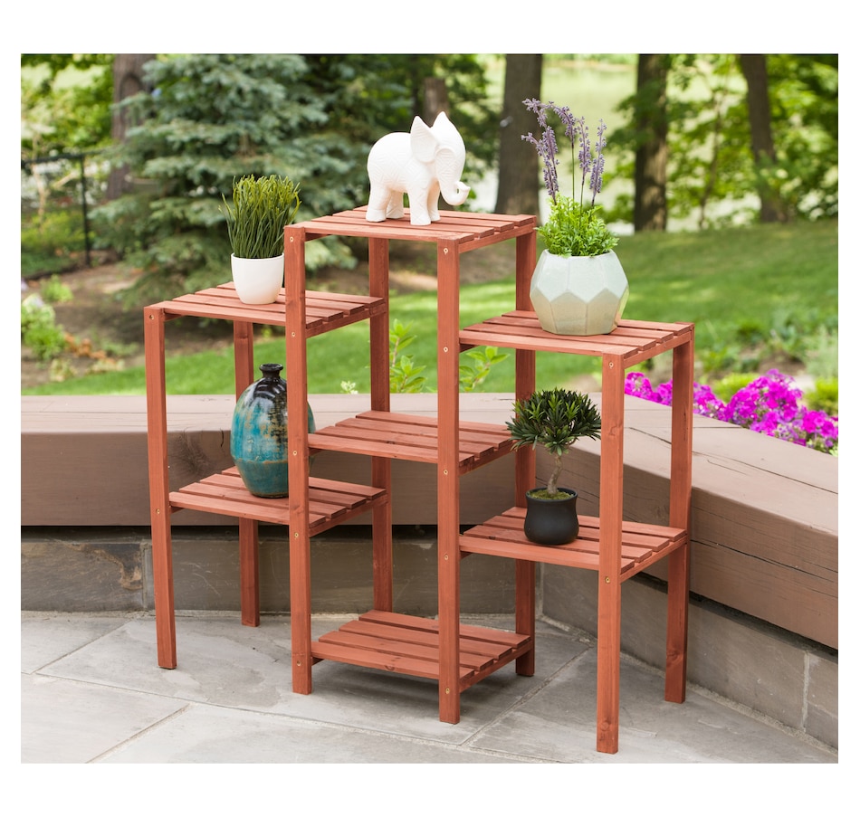 7-tier plant stand adds dimension and visual variety to any outdoor space  A new twist on a classic design. This multi-tiered plant stand displays up to 7 plants. Creates an instant focal point or striking accent. Crafted of solid wood harvested from the Cypress tree family with decay resistance similar to Western Red Cedar. Moisture resistant for maximum weather protection.