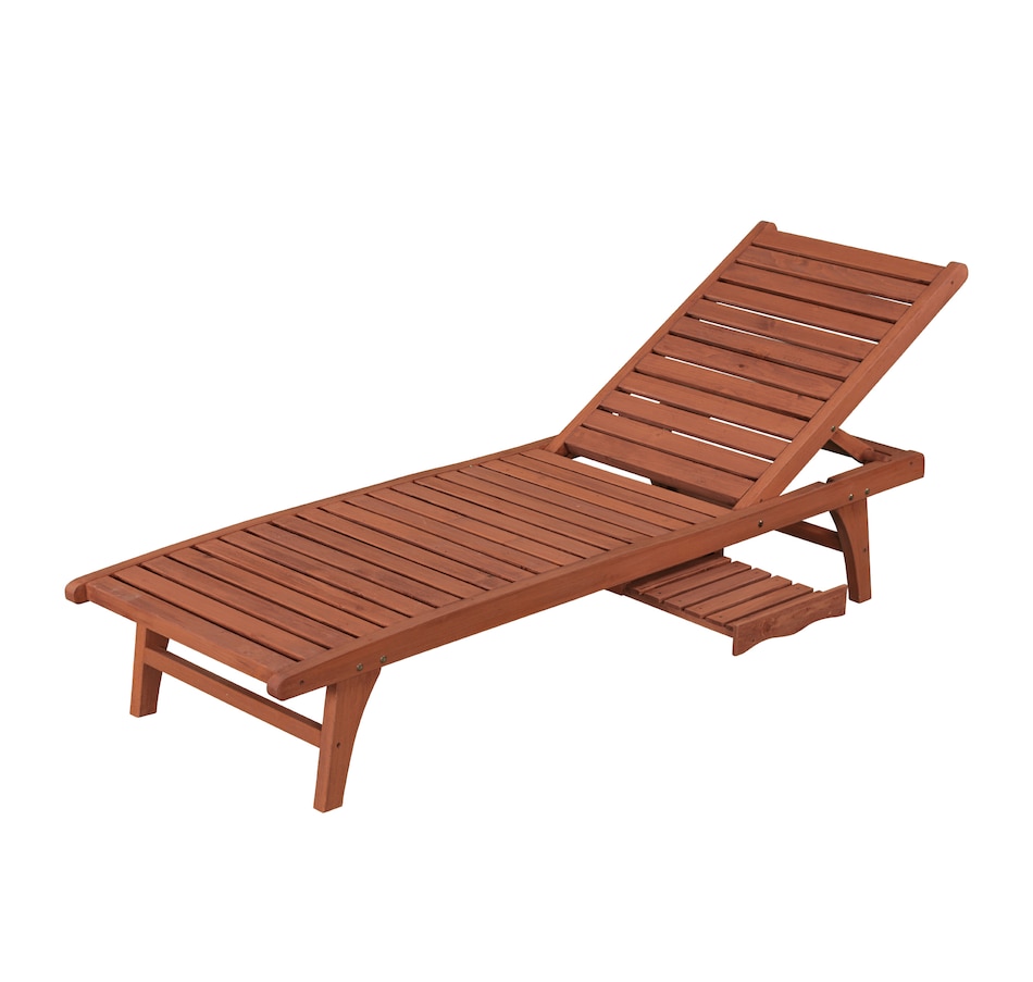 • Comfortable chaise lounge chair with convenient pull-out side tray