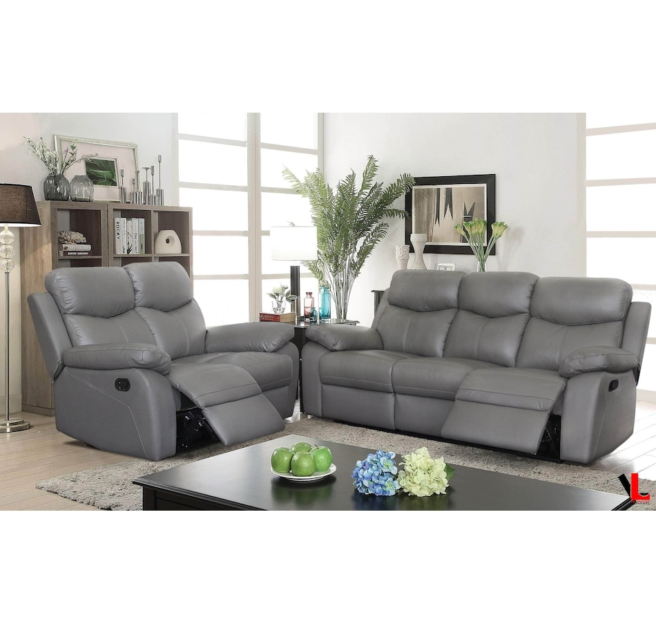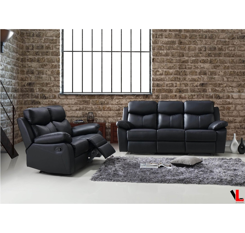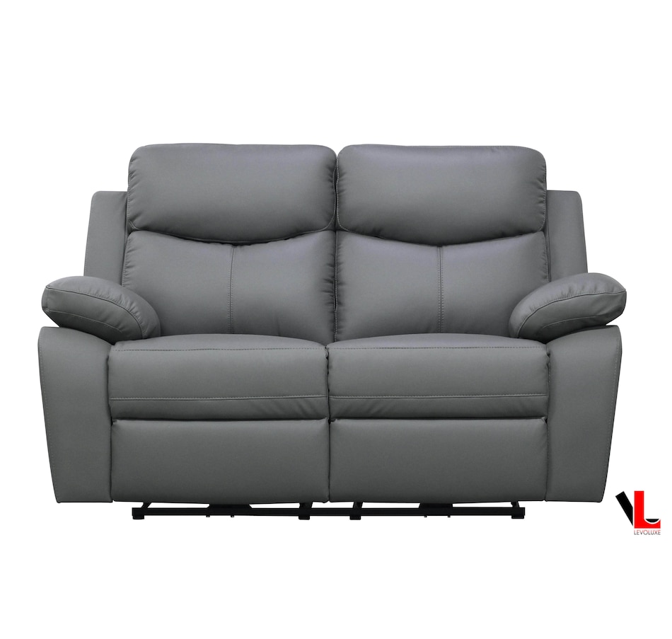 The Aveon reclining collection by Levoluxe blends premium materials and sophisticated comfort to give your living room the ultimate lounging experience. Easily relax with your feet up and your body resting on the supple genuine leather match upholstery, pillow top arms and cushion back. The manual lever, all metal recliner mechanism is designed to provide smooth reclining comfort your family can enjoy for years.