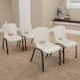 Lifetime children's stacking chairs are made of high-impact polyethylene, contoured for comfort, and designed for durability. Powder-coated tubing increases strength and stability through the life of your child's chair. They are lightweight, easy to clean, and can be used indoor or out for a variety of projects; from snack time, to finger-painting, or favourite games. The convenient design allows you to stack multiple chairs together for easy storage. The chairs are durable and perfect for your child's play or lunch time!