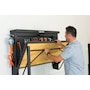 This wall-mounted work table from Lifetime is the perfect work and storage solution for your garage or shop area. This unique folding table is constructed of water-resistant wood with a heavy-duty metal frame. The sturdy steel frame has a powder-coated finish that protects against weather, rust and corrosion, and the table surface is made of water-resistant durable wood. Included in the design are interior and exterior pegboards to add hooks for tool storage, and the exterior loop will fit any standard padlock, keeping your tools safe and secure. Also included are 30 organizational hooks to keep your equipment and space in order.
