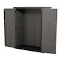 Decluttering your garage and maintaining your yard can be a challenging task. Whether you need a space for yard tools or other equipment, you need the right solution to keep everything organized. Lifetime’s Rough Cut™ Vertical Shed offers an excellent space to store a variety of items around your home. The Rough Cut™ finish features a wood grain texture that provides the natural look and feel of wood without the maintenance of painting or staining. It is also UV-protected and weather resistant. The six removable wall hooks snap into predefined locations without the need for hardware and allow you to hang items off the floor. The shed frees up valuable space in your garage by providing plenty of room for bigger items like rakes, brooms, shovels, storage totes, bins and even most push mowers. The durable, impact-resistant build, steel-reinforced walls, and lockable doors (lock not included) provide plenty of protection for your belongings. With the Lifetime Vertical Shed, you can keep your yard looking organized and pristine.