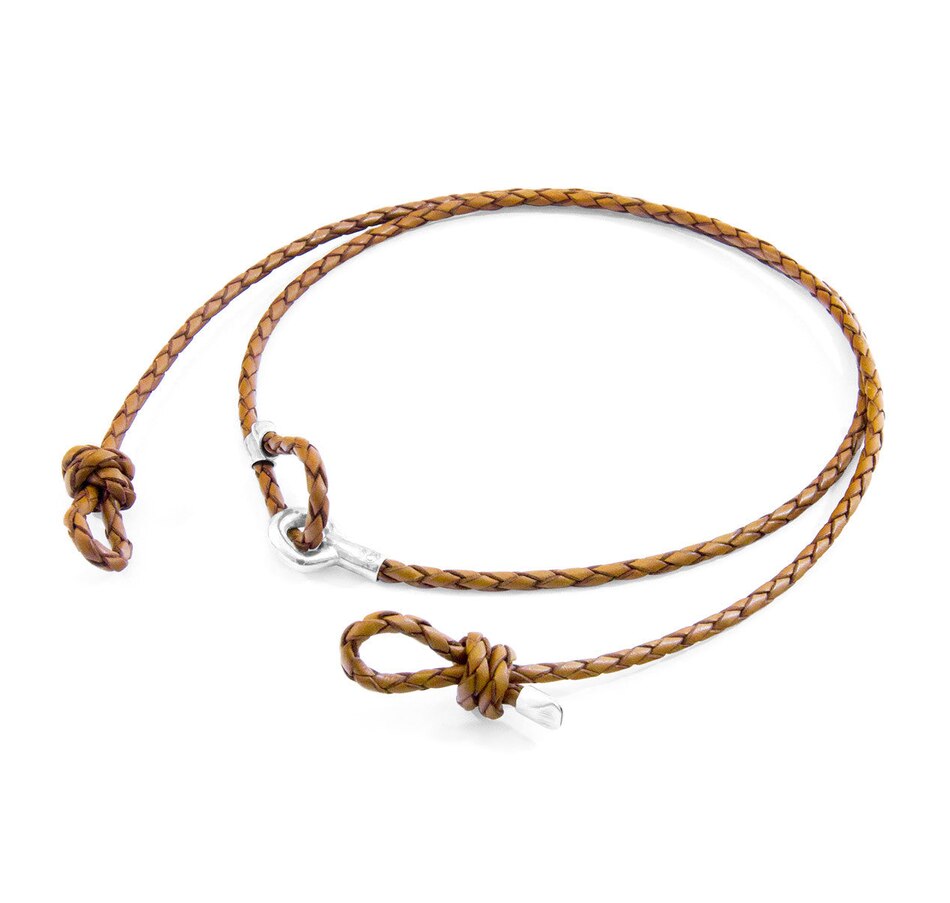 The Light Brown Blake Silver and Braided Leather Eyewear Strap was both designed and skilfully handcrafted completely in Great Britain. Combining British craft manufacturing with a discerning modern-minimalist style, this ANCHOR & CREW eyewear strap features:Genuine and natural round-shaped braided leather (GB)Secure solid .925 sterling silver hexagonal loop-clasp and miniature divider pulley (GB)SIZINGThis eyewear strap is one size fits all, with the leather able to extend or tighten to suit your ear-to-back length. To take the eyewear strap on or off your glasses, tighten the knots around the glasses' temples (arms), and to adjust the strap's length, simply slide the miniature divider pulley around the leather to make the loop size smaller or larger. Less is More.