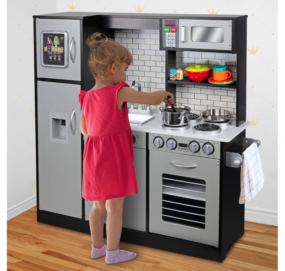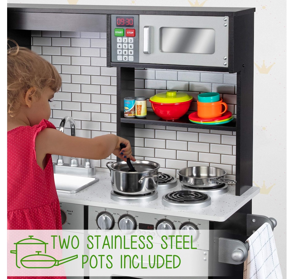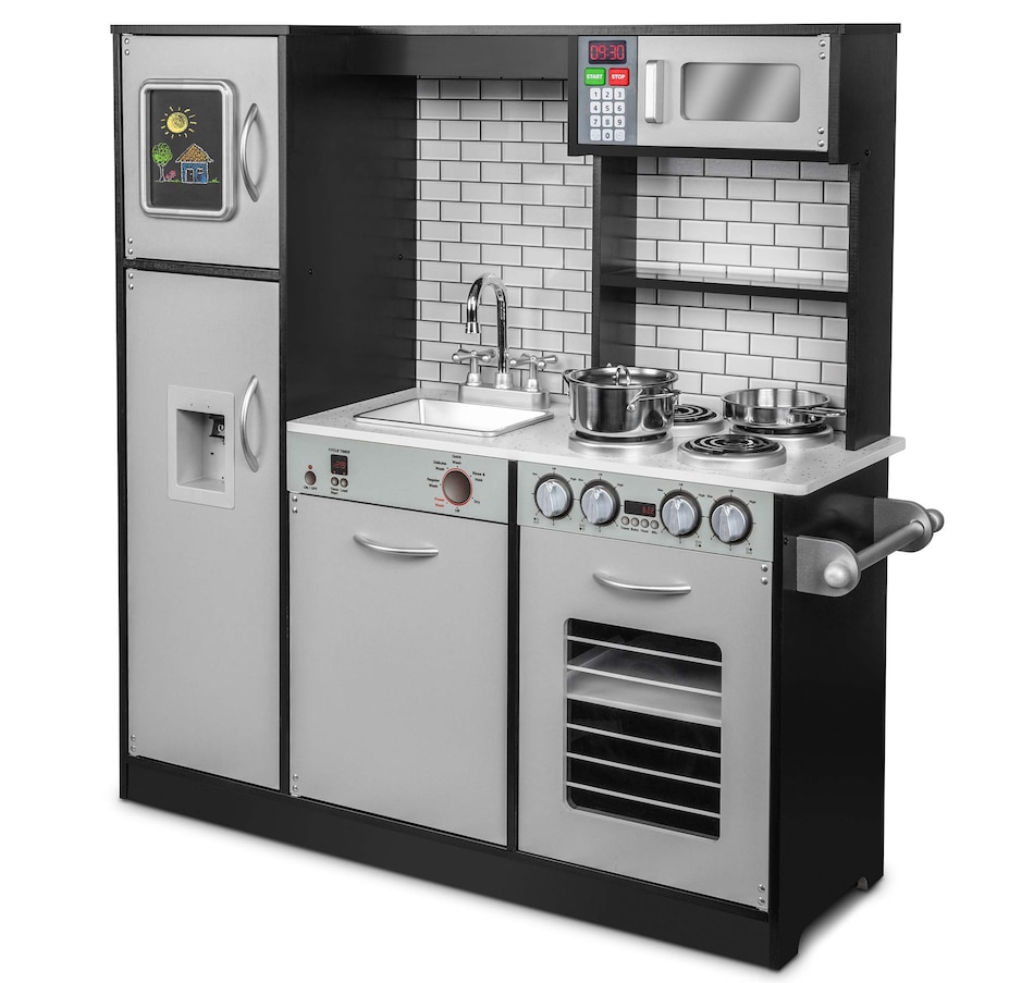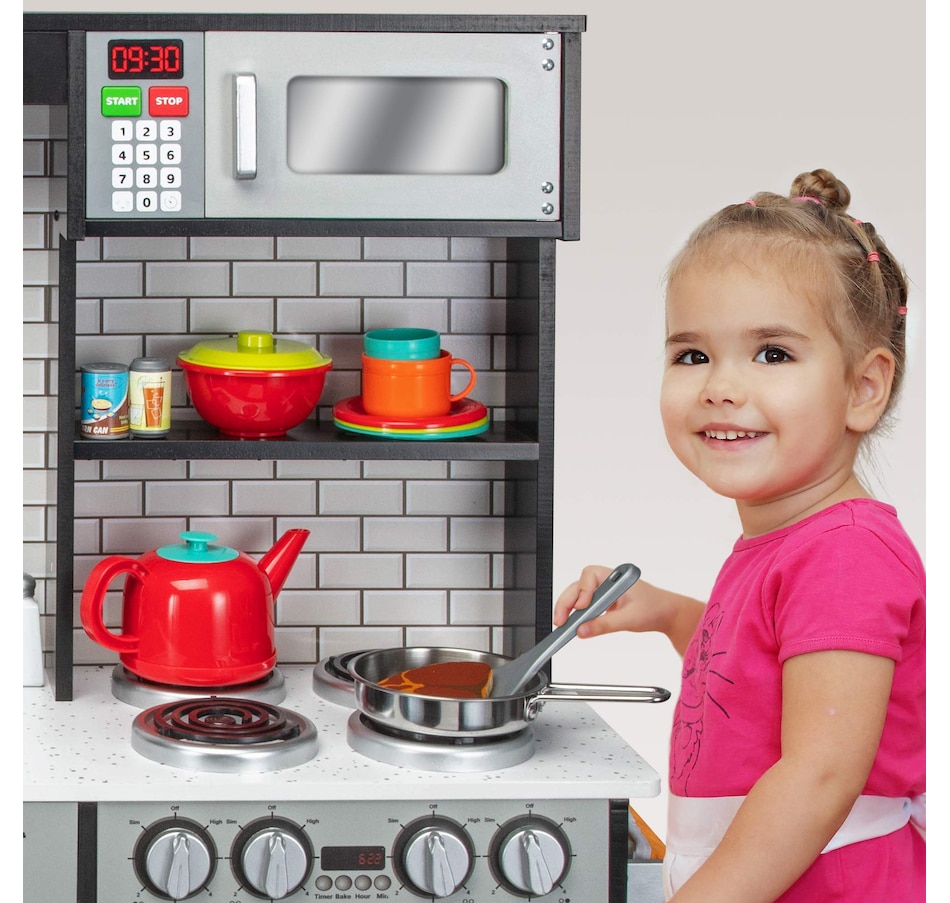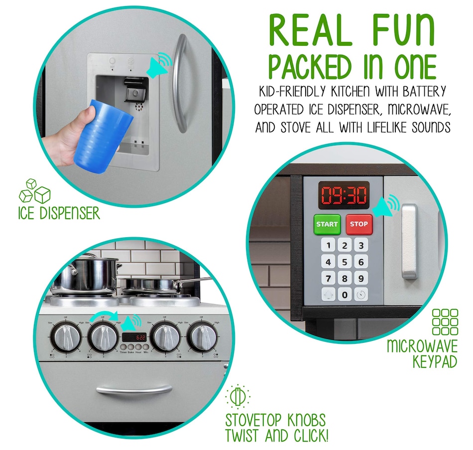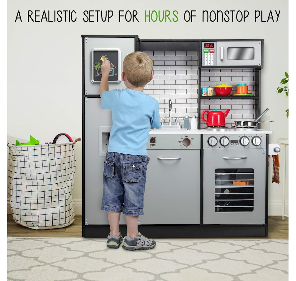 Lil' Jumbl Kids Kitchen Set, Wooden Pretend Play Kitchen with Sounds & Accessories - Charcoal