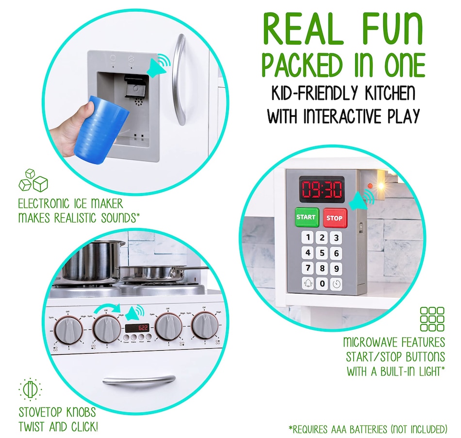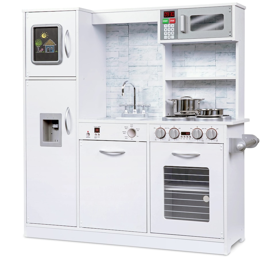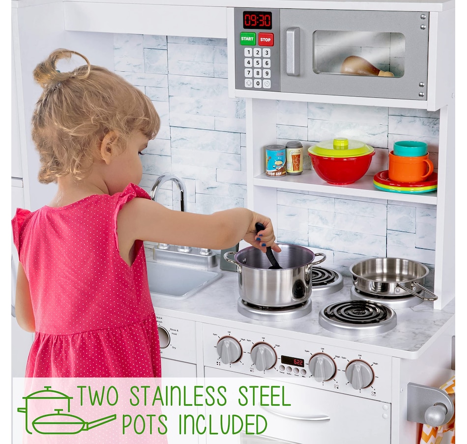 Lil' Jumbl Kids Kitchen Set, Wooden Pretend Play Kitchen with Sounds & Accessories - White