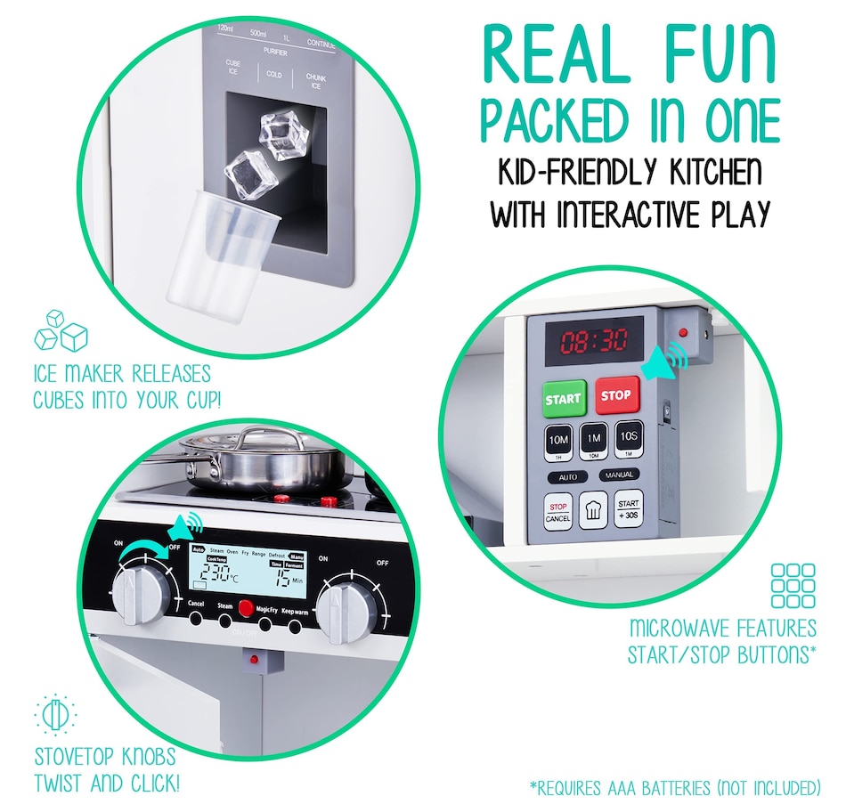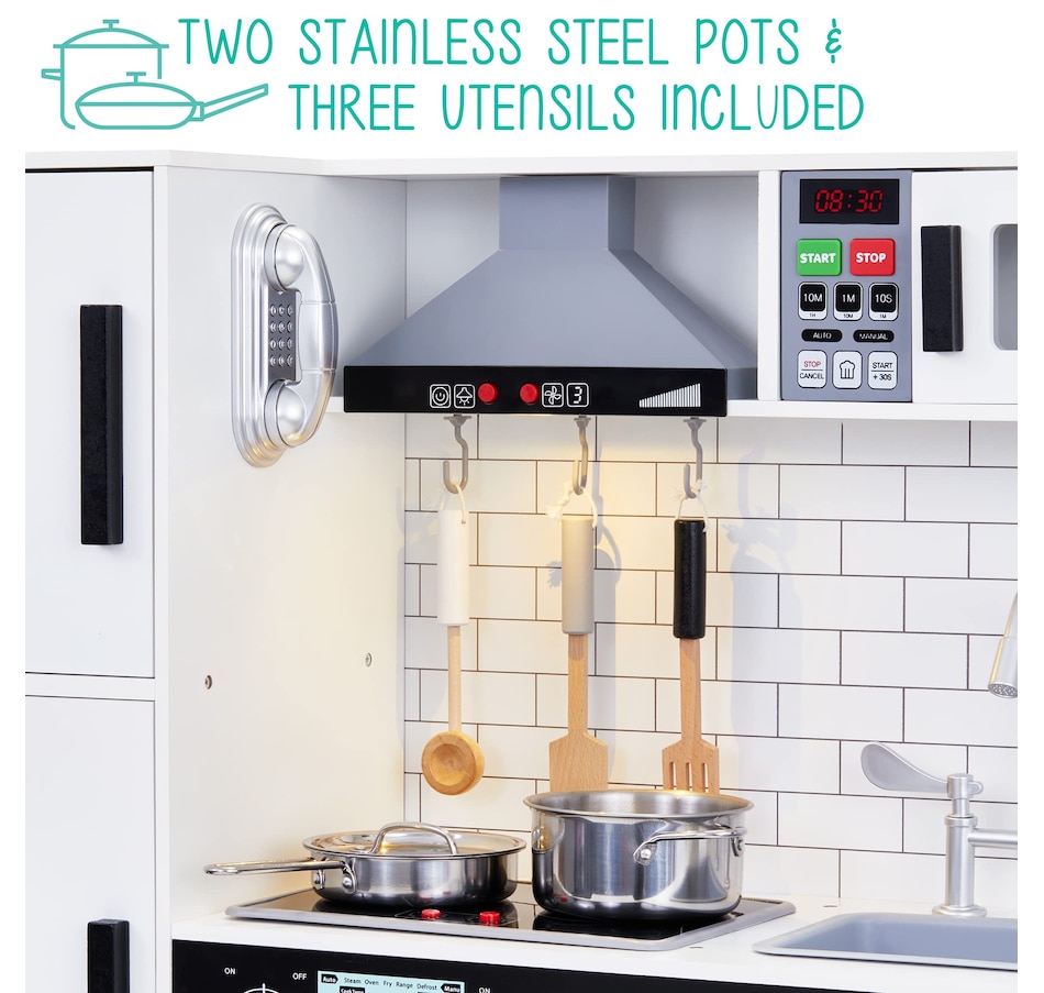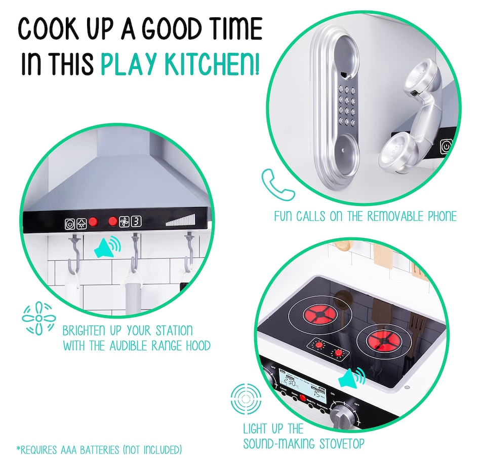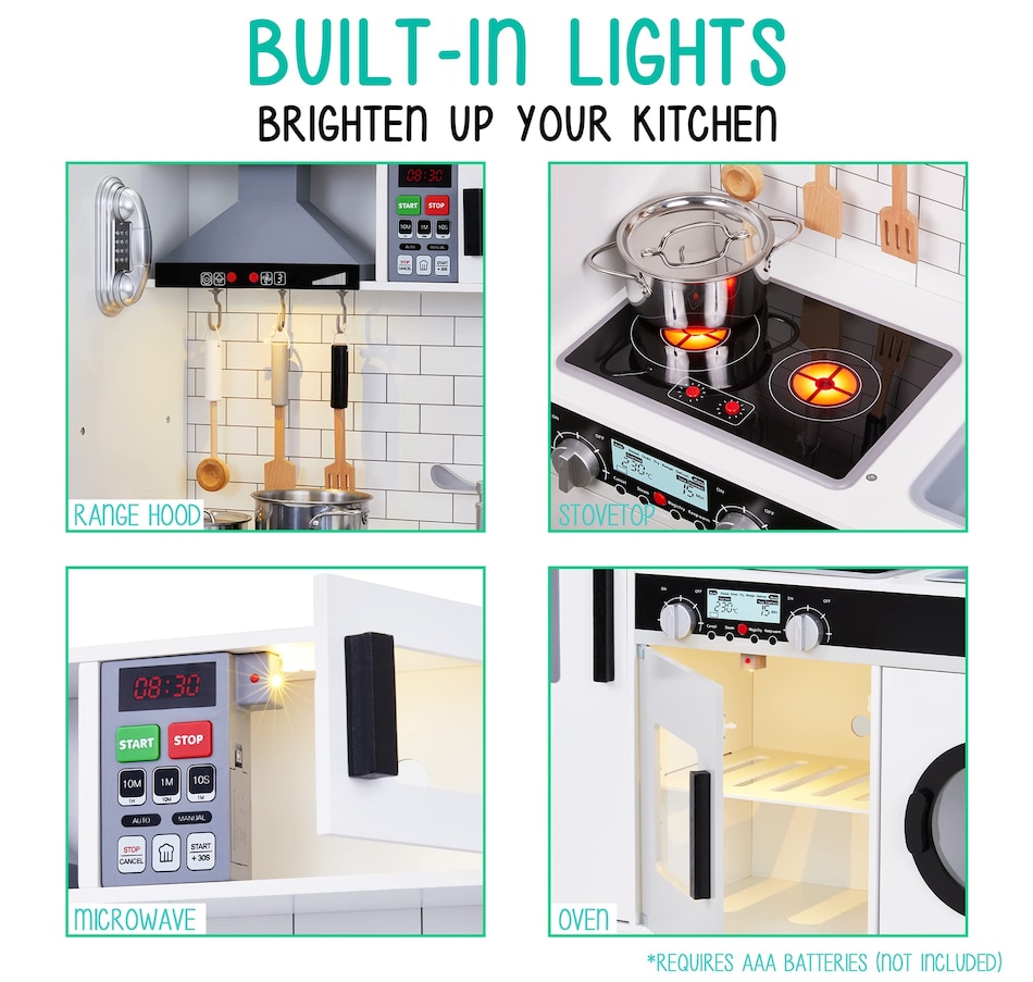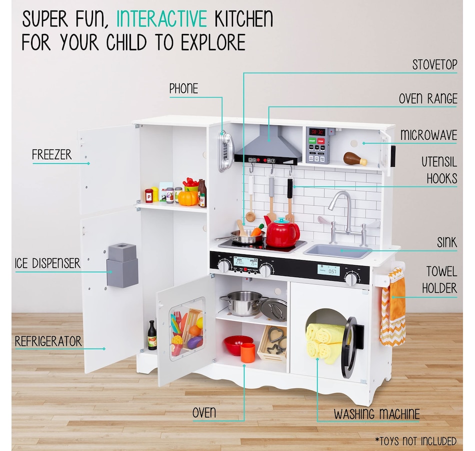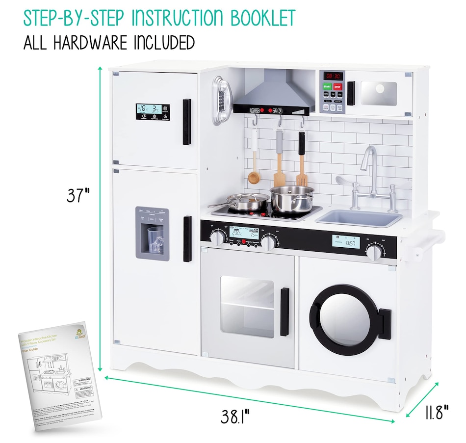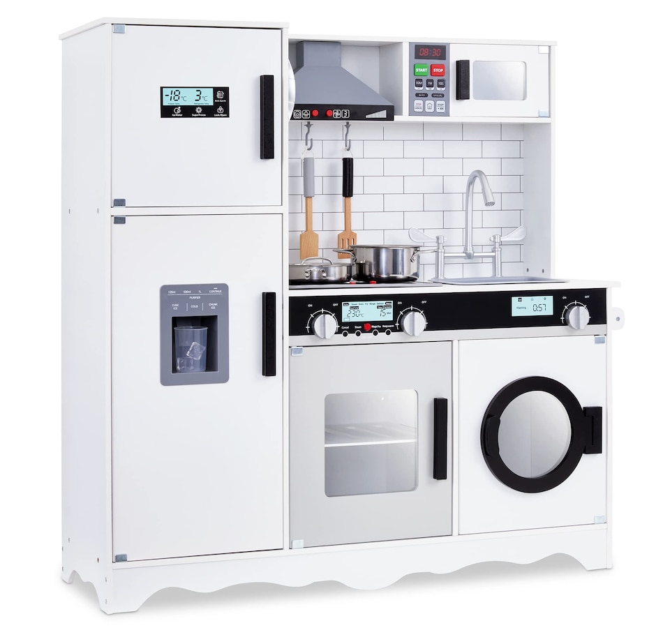 Lil' Jumbl Large Kids Kitchen Set, Wooden Pretend Play Kitchen with Sounds & Accessories - White