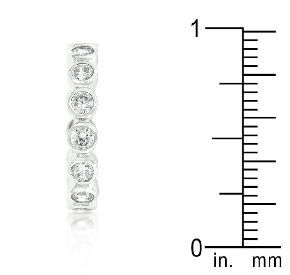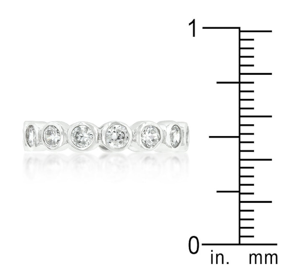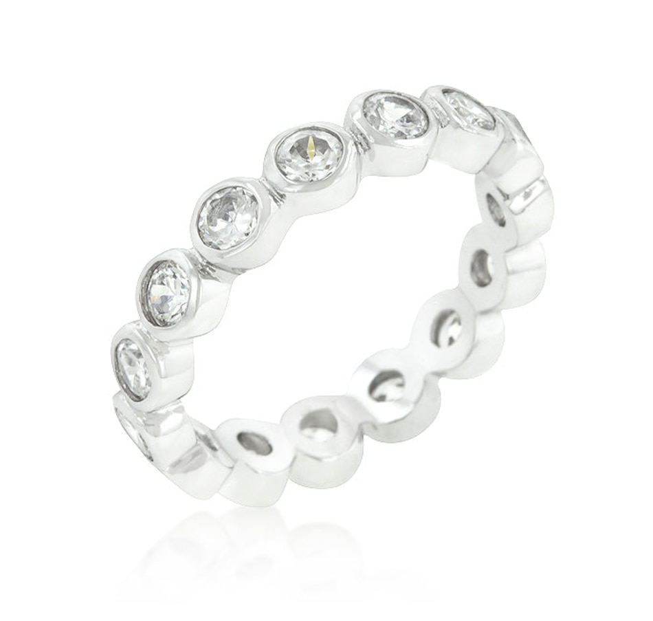This exquisite and one-of-a-kind eternity band features an astounding set of cubic zirconia. Our genuine finish is achieved using an electroplating process that coats the item with heavy layers of a close cousin to platinum which gives our jewelry a platinum luster.
