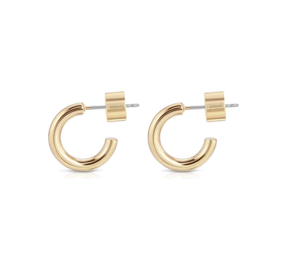 Lisa Huggie Hoops are recycled brass hoops with hypoallergenic surgical steel posts.Hoops measure:Inside Diameter: .35"Outside Diameter: .55"Thickness: 2.5mmFinishes available:14K Gold Rhodium