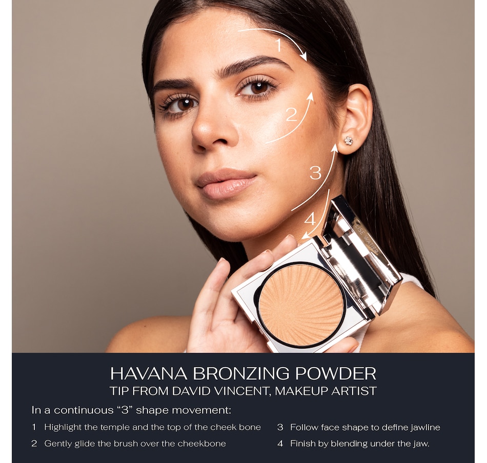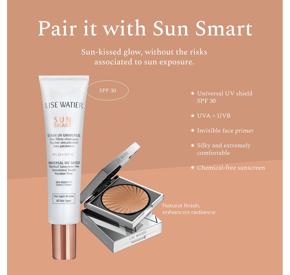 The light golden hue of this bronzer gives the skin a radiant sun-kissed glow, without the risks associated to sun exposure. It can also be used to simply accentuate a natural tan.