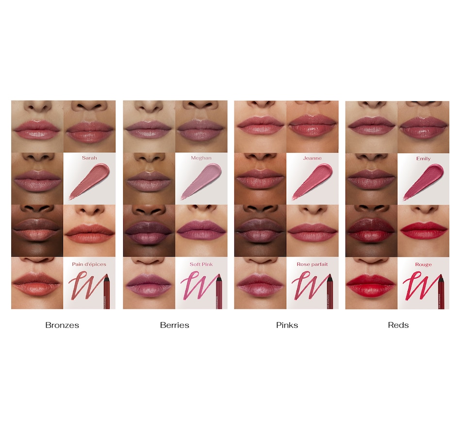 • Waterproof Lip Crayon (1.2 g) – Red (Rouge), Pinks (Soft Pink), Berries (Rose), Bronze (Pain D'Épices) —valued at $31.00