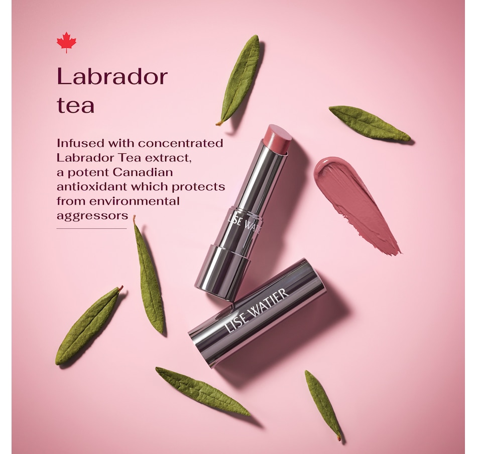 Infused with concentrated Labrador tea extract, this lipstick glides on easily, provides a lustrous finish, and leaves lips feeling incredibly soft and luminous. Its hydrating formula is rich in antioxidants and has a lightweight texture.