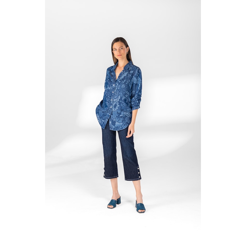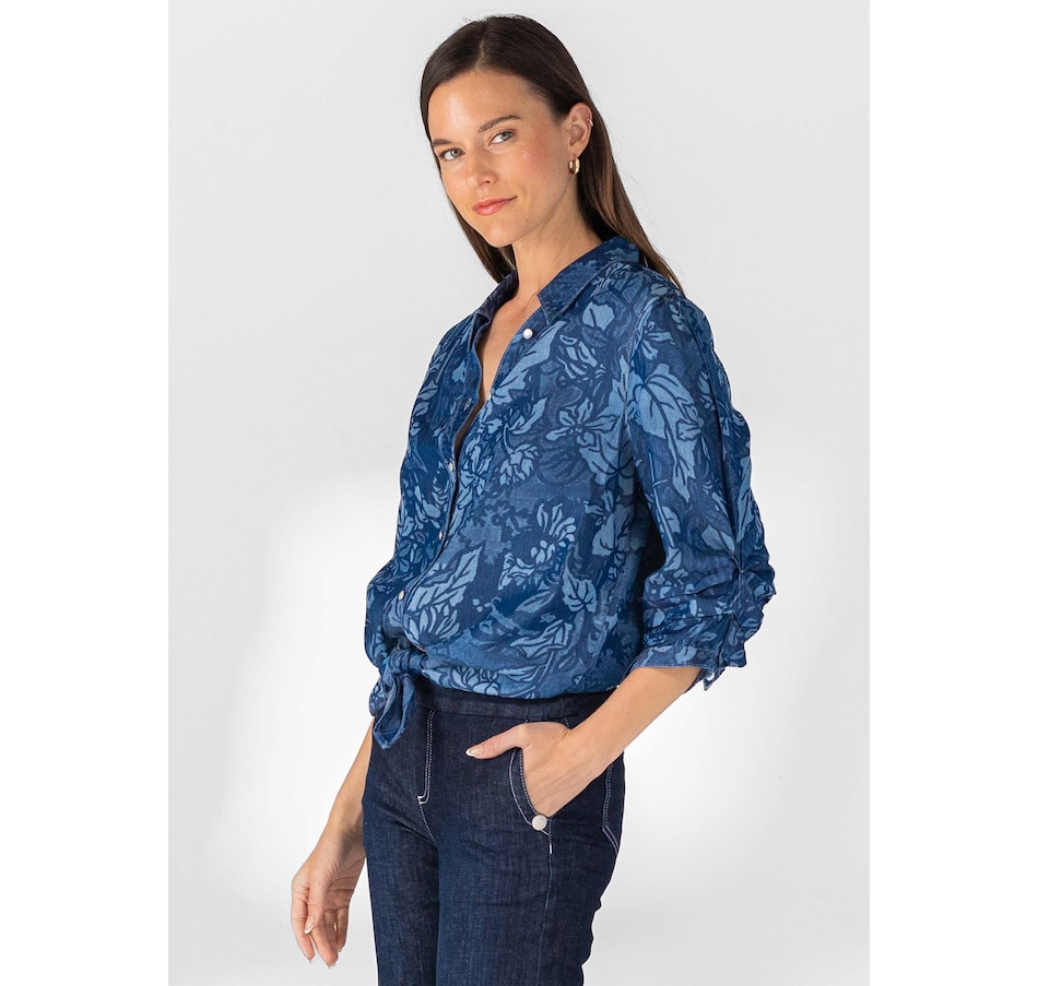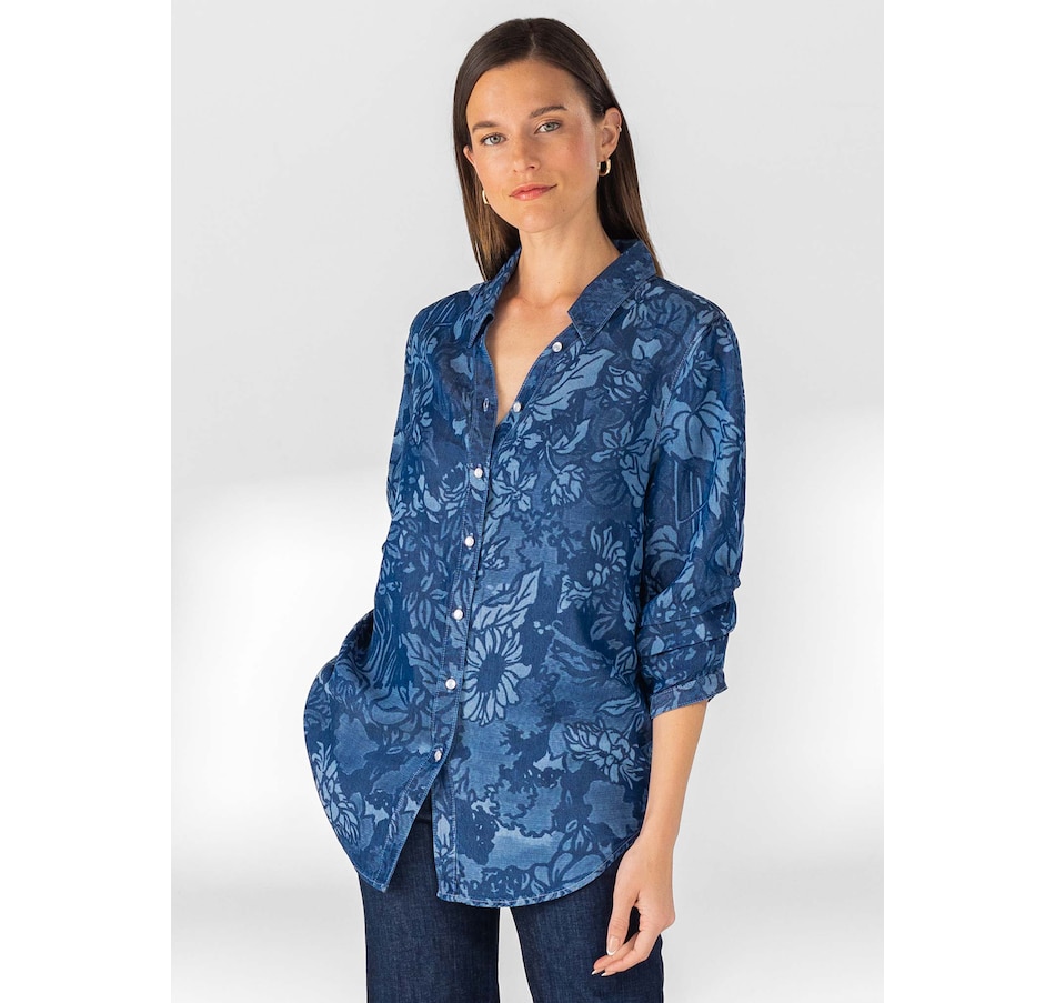Versatile with a warm look, you'll love the easy style of the beautiful Makayla denim floral blouse from Lisette.