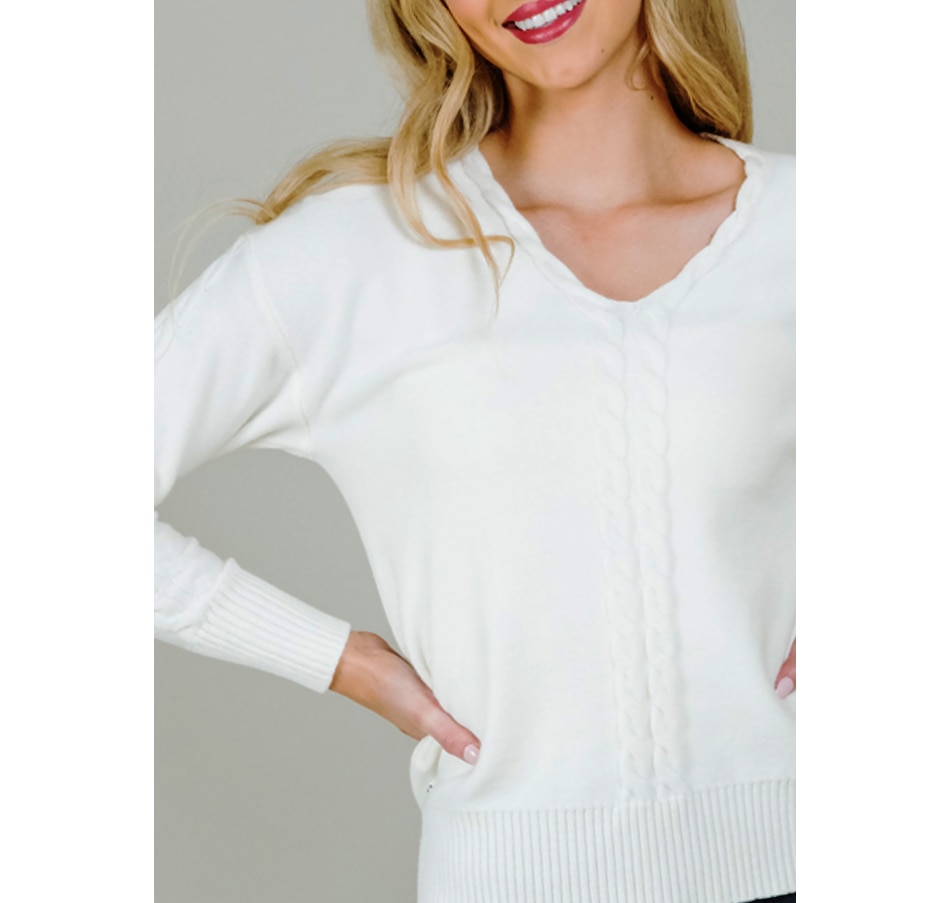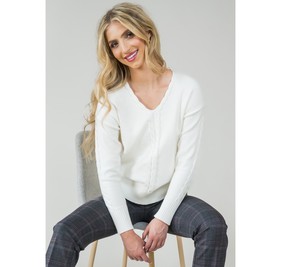 Lisette Nola V-Neck Sweater with Cable Knit Detail