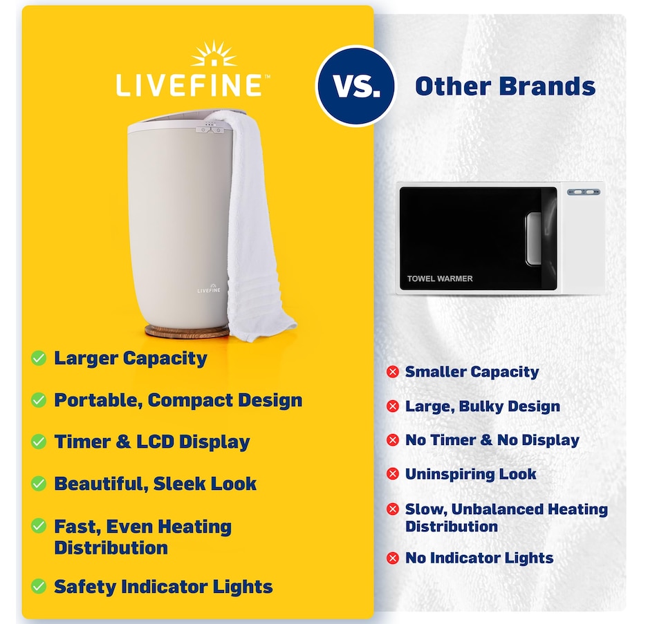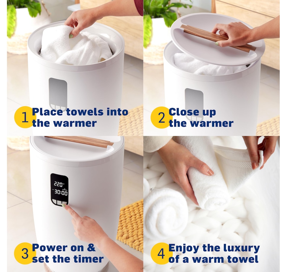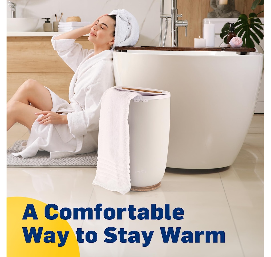 This luxurious bath towel warmer is built with an adjustable timer and heating indicator for smooth easy operations. Select your ideal timer, soak in the tub, then prepare for post-bath bliss. The compartment in the small towel warmer keeps your towel pleasantly warm for up to 90 minutes after the cycle ends. Skip the goosebumps—get a LiveFine Towel Warmer Bucket!