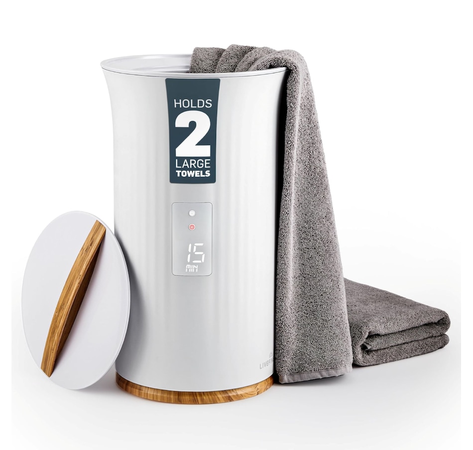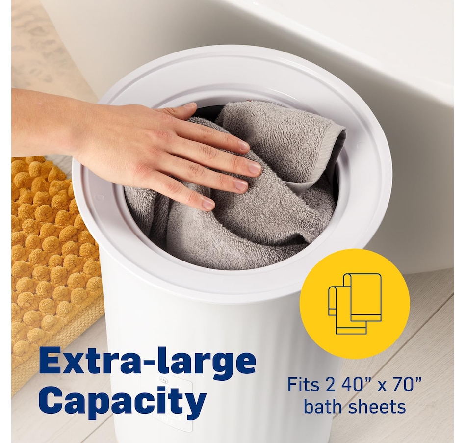 Is chilly air making it tough to dry off? With this bucket-style Large Electric Hot Towel Warmer from LiveFine, anything made from cotton turns into a comforting embrace. The spa-quality towel warmer for bathroom fits up to two towels at a time, ensuring everyone has a perfectly warm towel ready to wrap themselves with. The spacious interior on the towel & blanket warmer also fits other fabric essentials, including hand and face towels, small robes, hair wraps, neck towels, and spa towels for facial and other massage therapy supplies.