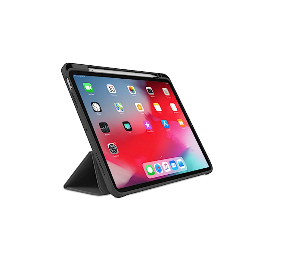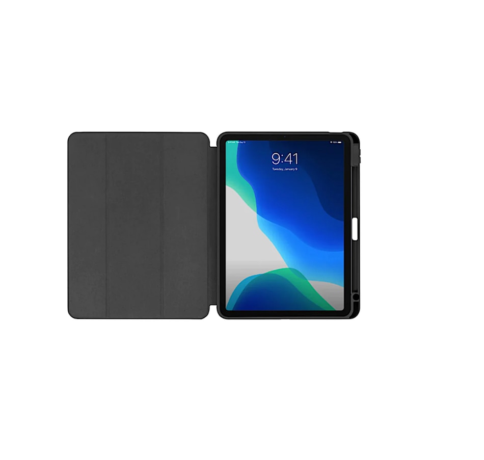 The Cabrio is a premium protective case for the iPad 10.9". Showcase the iPad's sleek look with the anti-scratch clear back design, and the tri-fold front cover quickly folds into reading, viewing and typing modes.