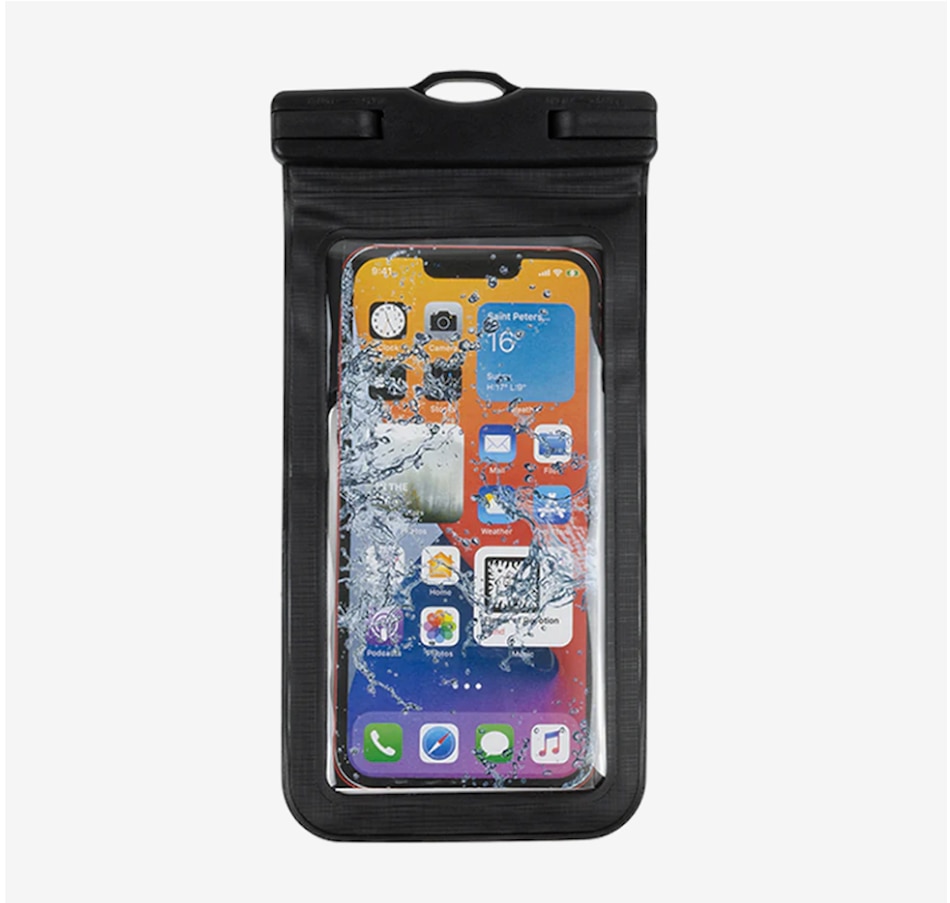 This fully waterproof pouch for smartphones features a universal design, making it perfect for devices up to seven inches. A clear window helps ensure complete touch control, and a fabric lanyard helps prevent drops.
