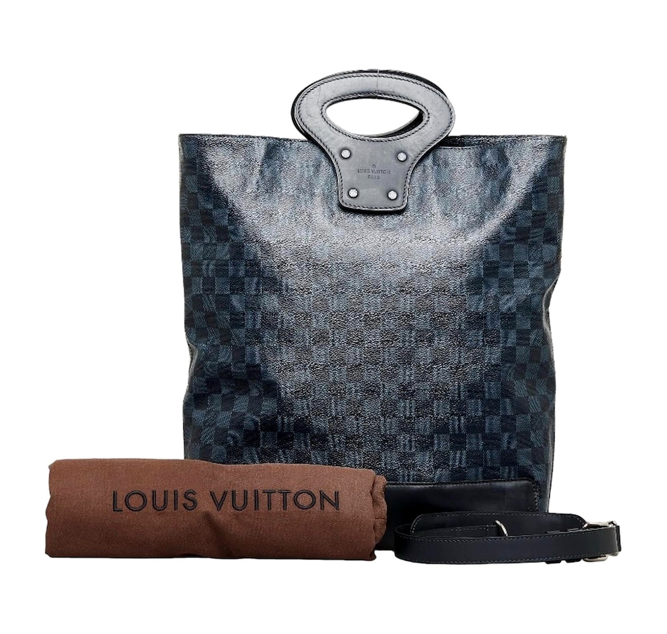 The Louis Vuitton North South Tote in Damier Cobalt - Black is a sophisticated blend of luxury and practicality, perfect for the modern individual. Crafted from the iconic Damier Cobalt canvas, this tote features a striking black and deep blue pattern that exudes elegance and versatility.