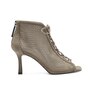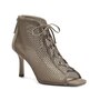 Lace-up boots are trending and the Kalypso is one of our favorite options. Designed in suede with hex mesh cutouts, the booties are styled with a peep toe covered heel and signature hardware. Wear yours with a modest midi skirt for a sexy contrast.