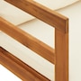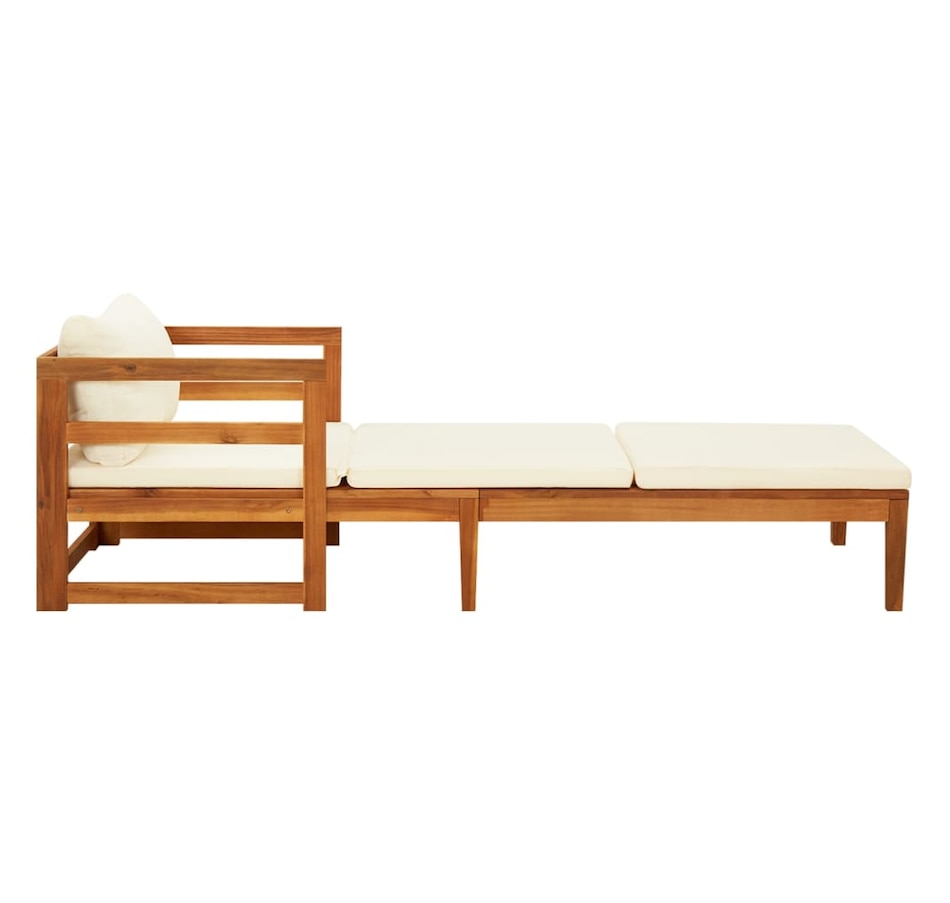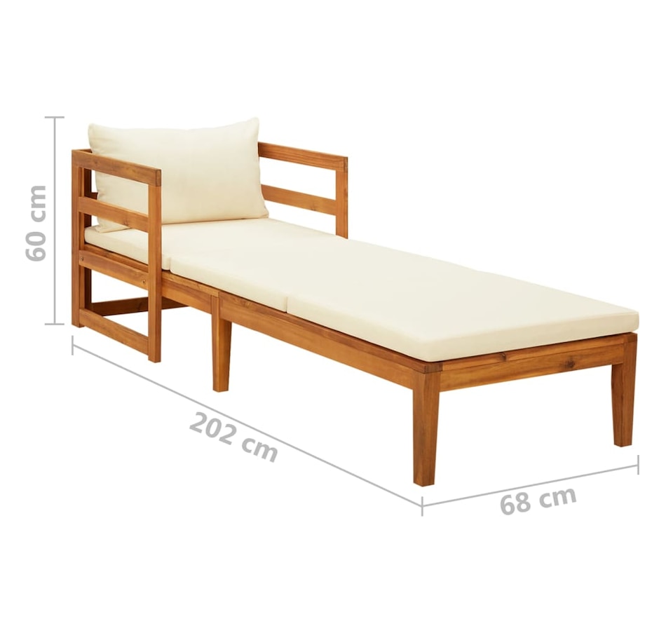 Enjoy a pleasant moment of relaxation with your friends or family in the outdoor area on this wooden deck chair! This garden deck chair is made of solid acacia wood, a hardwood with dense grains. This beautifully designed outdoor lounger is stable, durable and eye-catching. Additionally, the exquisite craftsmanship and beautiful wood grains make each piece slightly different from the next. Besides, the included cushions add more comfort while you rest.Note: In order to extend the life of your outdoor furniture, we recommend cleaning it regularly and not leaving it outdoors unprotected unnecessarily.Cleaning: Use a mild soap solution.Storage: If possible, store in a cool, dry place indoors. If the product is stored outdoors, protect it with a waterproof cover. Wipe and dry excess water or snow from flat surfaces after rain or snowfall. Allow sufficient air circulation to avoid moisture damage.
