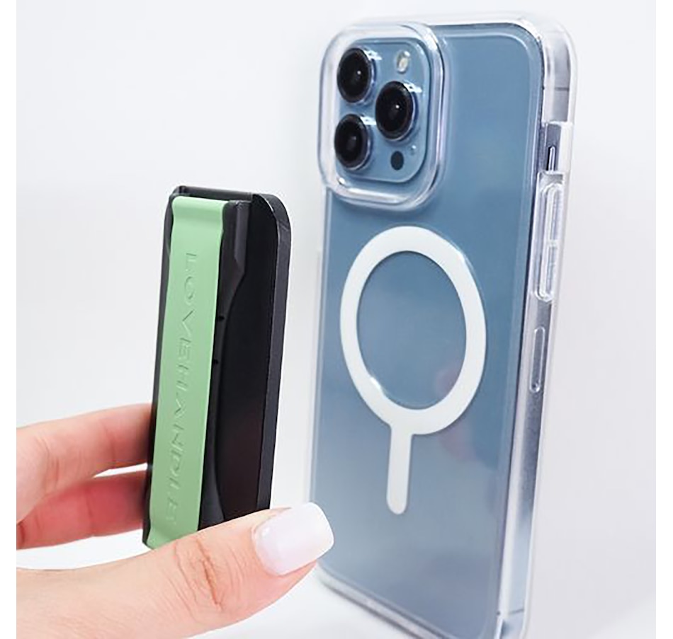 The LoveHandle Pro MagSafe is the ultimate companion to the LoveHandle Pro for iPhone 12, 13 and 14 users who also love wireless charging with MagSafe accessories. LoveHandle MagSafe gives you the flexibility to enjoy a comfortable grip and an instant kickstand, plus magnetic mounting to metal surfaces and the LoveHandle universal mount, with the added convenience of removability for wireless charging access.
