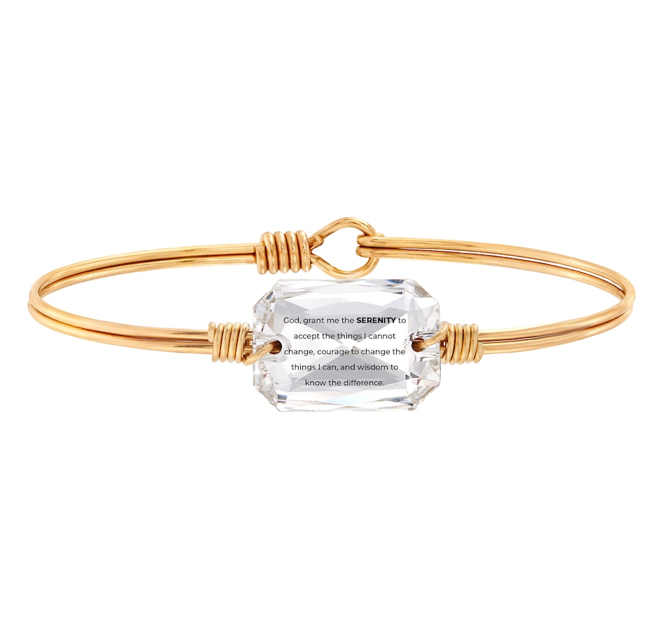 With this secret message jewellery piece, a private moment of reflection is just a glance away when you wear this serenity prayer bangle by Luca Danni.