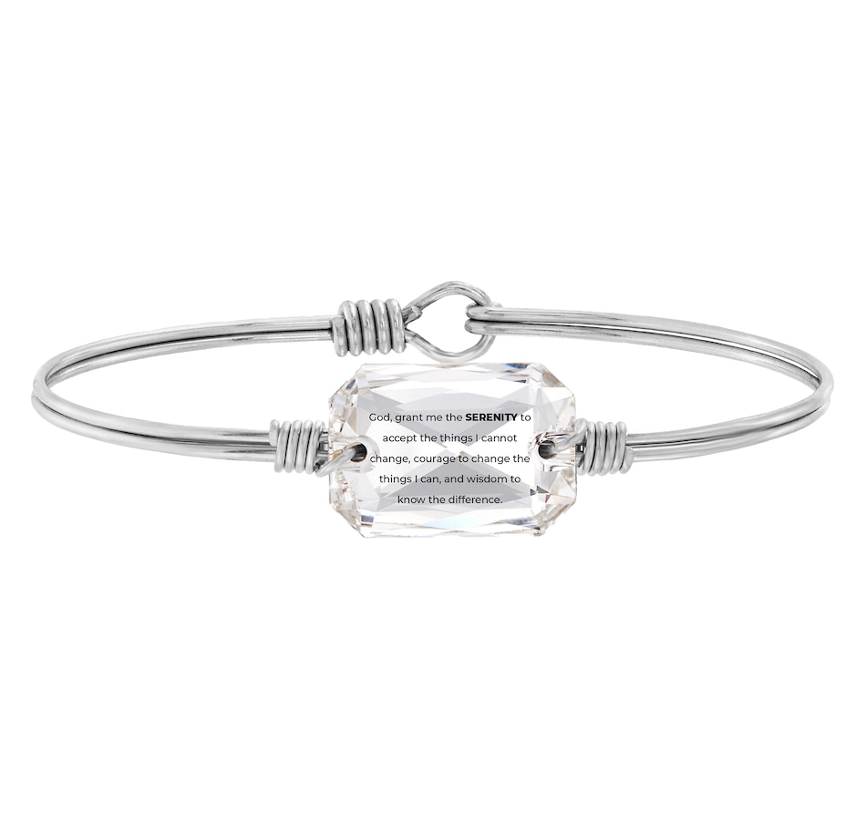 • (1) 5/8" x 7/8" emerald cut crystal with words of serenity prayer engraved