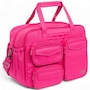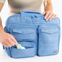 • (Exterior) main compartment, (2) side cargo pockets, front soft line magnetic closure pocket, (3) front zipper compartments with magnetic closure pocket, padded tote handle, padded removable/adjustable crossbody strap rear zipper pocket, trolley sleeve, wipeable bottom and feet