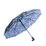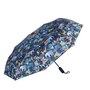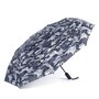 • To close: press the button on the grip handle to collapse canopy; retract shaft by pushing umbrella top towards grip handle until clicked into secured folded position
