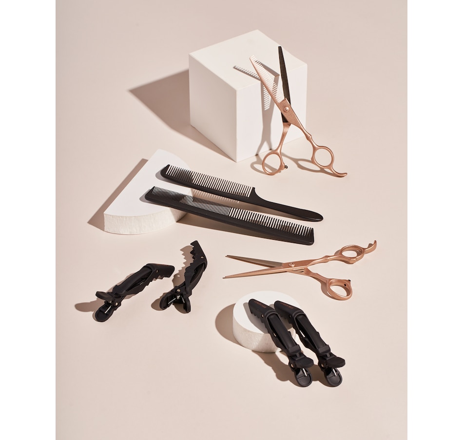 Cut with precision! the Groom Me kit features lightweight, stainless steel shears in a beautiful rose gold for easy, comfortable styling. Use the included Bite Me Alligator clips to section and clip your hair out of the way.
