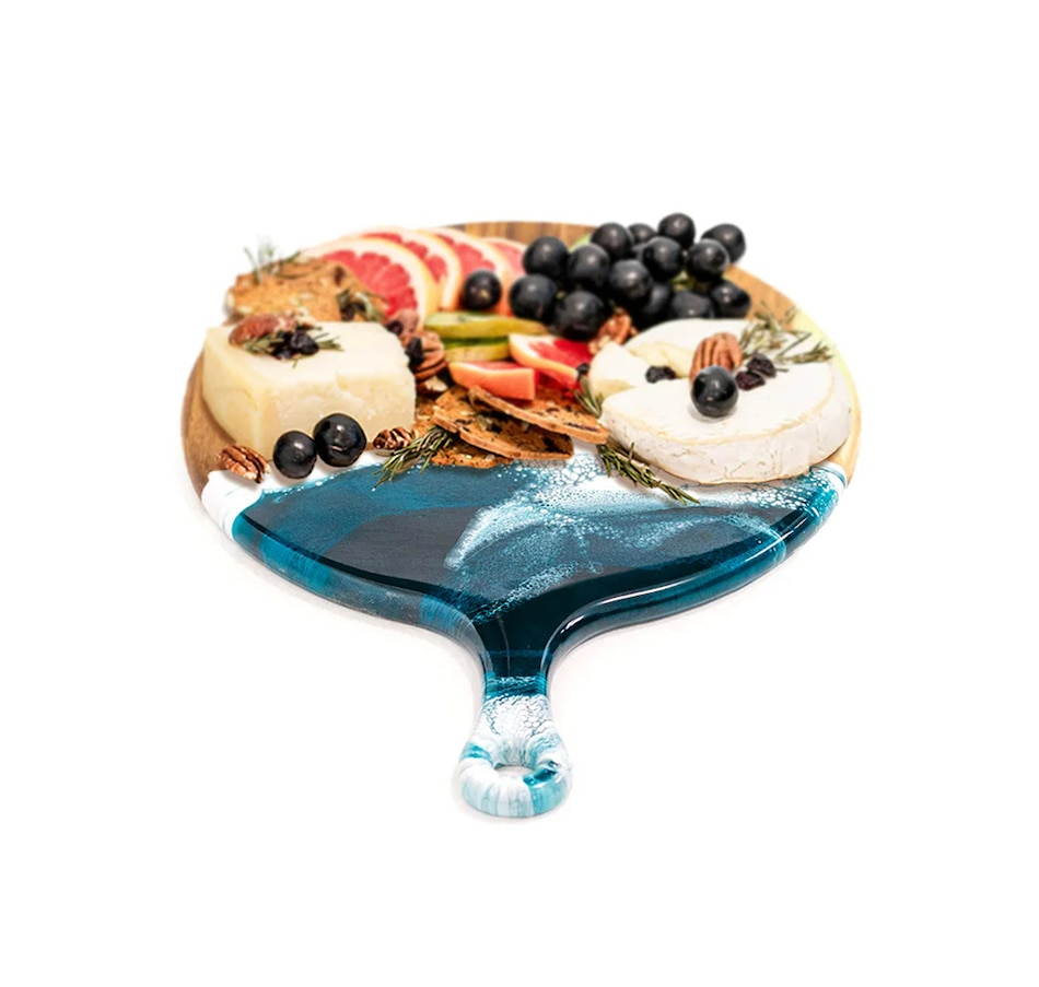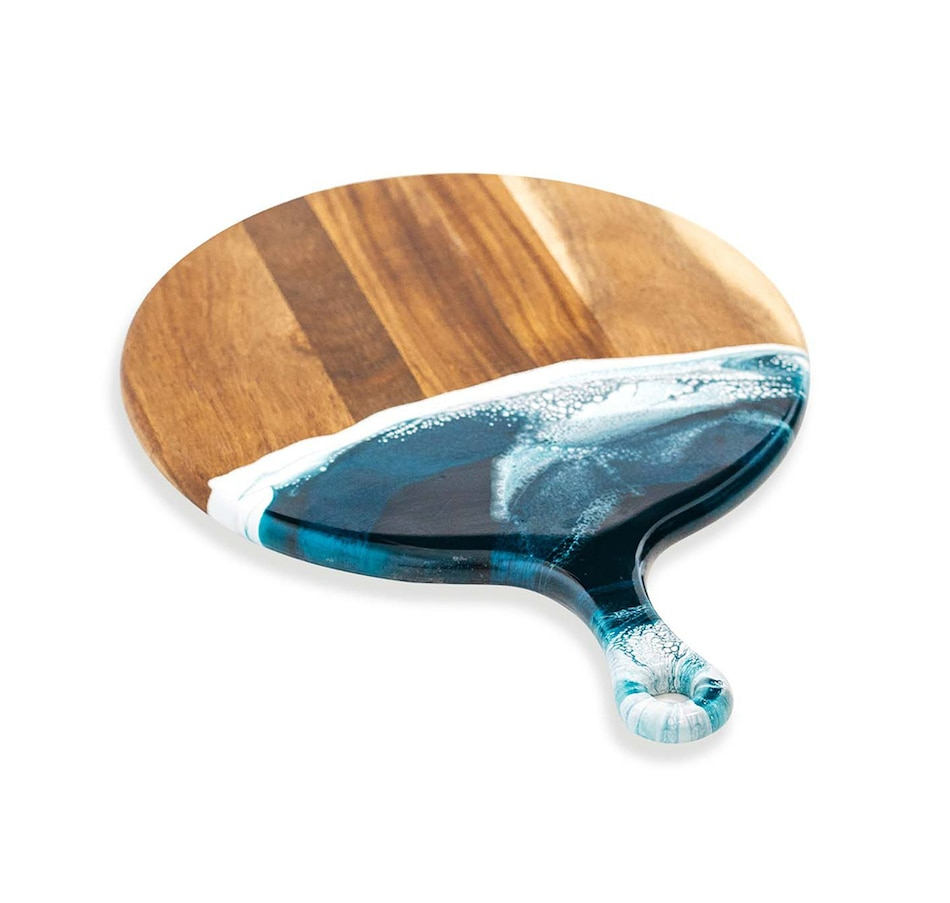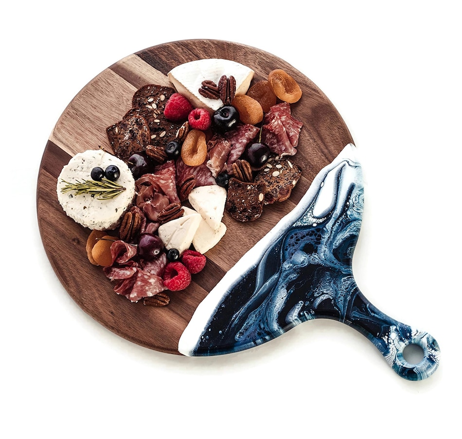 • Lynn & Liana Handmade 12" Acacia Cheese Paddle, Navy White Metallic Design