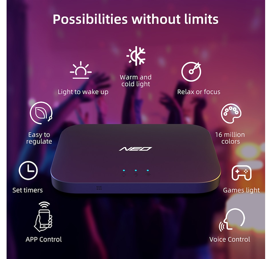 Enjoy a seamless syncing experience with the Neo sync box. It supports high quality video (4K/60Hz), and can work on Dolby vision and HDR 10 . You can also connect to a huge range of devices through HDMI; it works with Apple TV, Xbox, PlayStation, Mac, Windows and many more. Just plug in and play!