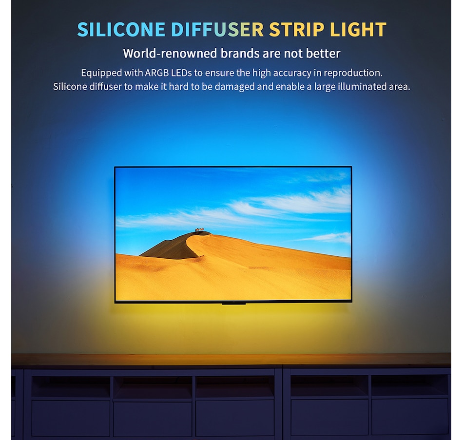 • The upgraded light strip is now equipped with a special designed silicone cover, enabling the light to shine a larger area due to an illumination angle shift from 90° to 45°