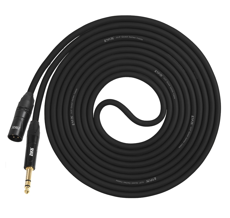 The LyxPro Star Quad Series XLR to 1/4 cable delivers supreme signal transfer and clear high-frequency transmission while providing stellar performance and maximum noise rejection. These TRS 1/4 to XLR microphone cables are durable and will handle life on the road well. Each XLR to 1/4 adapter microphone cord is constructed of 24 AWG Oxygen-Free Copper (OFC), 98% braided shield, and gold-plated contacts on the connectors for corrosion resistance.