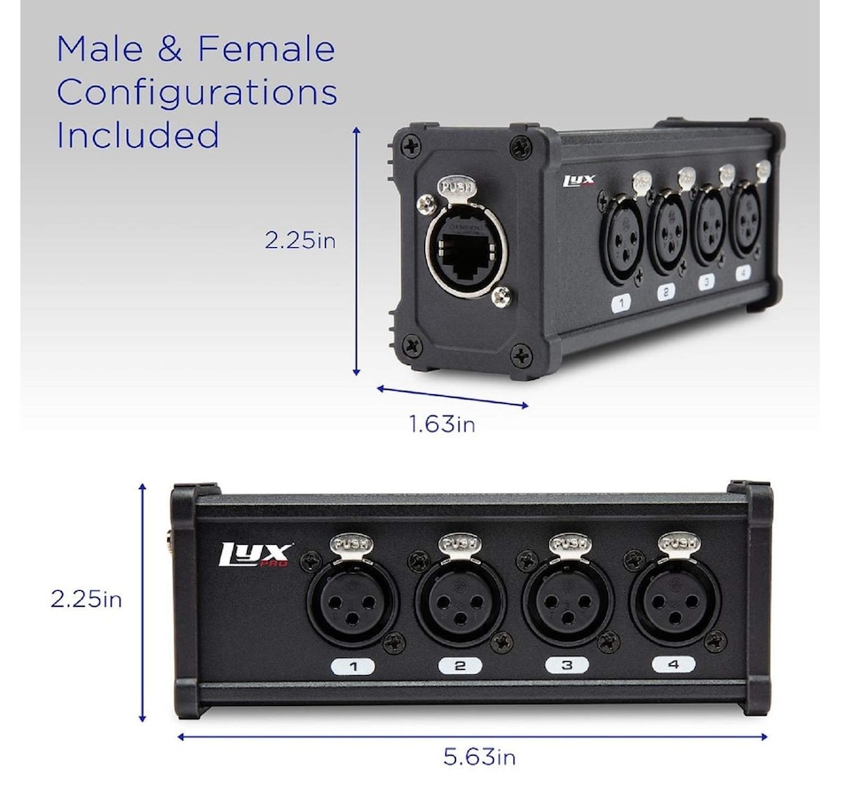 4 Channel XLR Splitter Box, Cable Breakout Male & Female to RJ45 Ethercon