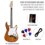 The main focus of this beginner electric guitar set is the CS Series Electric Guitar but, our electric guitar starter kit also arrives with all the essentials you need to play like a pro including a stunning solid wood guitar, amplifier cable, picks, and a detailed training guide with instructions for handling, maintaining and learning to play this beautiful instrument. This electric guitar bundle has a value you can hear, just plug into your preferred amplifier via the provided cable, grab a pick, and strum on.