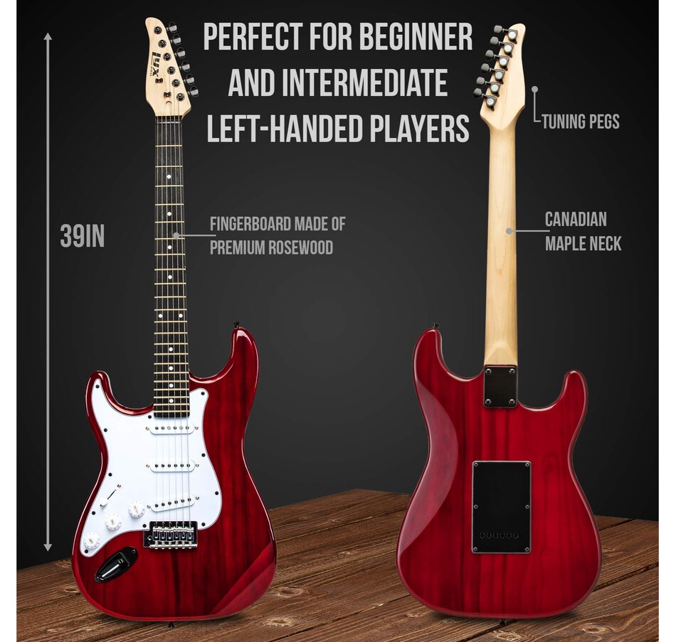 Electric Guitar Kit, 39” Left Handed Electric Guitar & Electric Guitar Accessories, Red