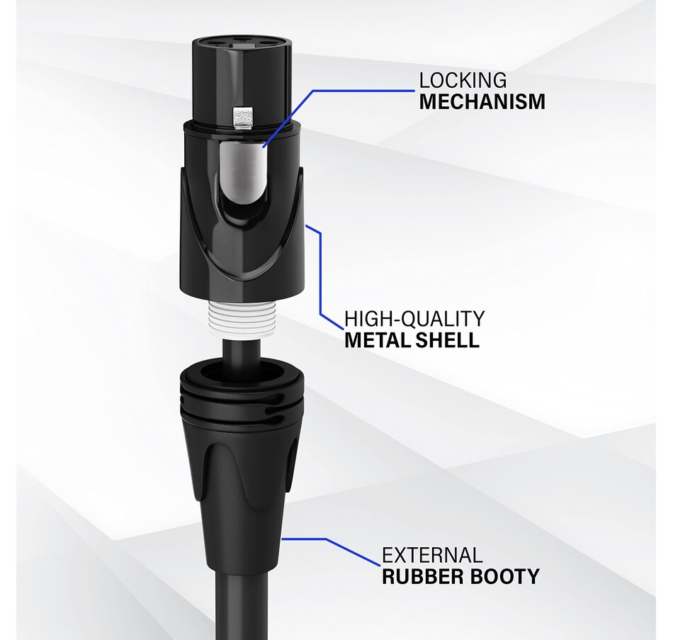 LyxPro XLR microphone cable with XLR connector is ideal for professional recording, studios, performances, schools, audio for video, bands, audio interfaces, and connecting mixer outputs to monitors or speakers and many other audio setups.