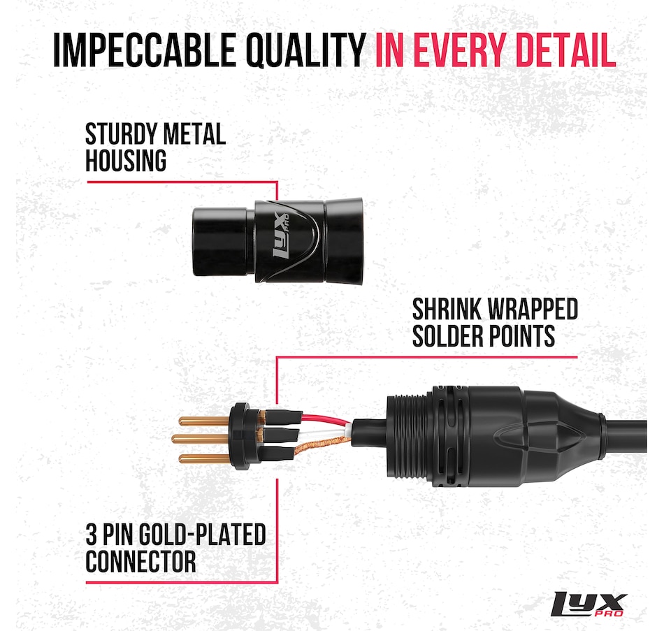 LyxPro XLR microphone cable with XLR connector is ideal for professional recording studios, live performances, schools, churches, audio for video, audio interfaces, and connecting mixer outputs to monitors or powered speakers and many other audio setups.