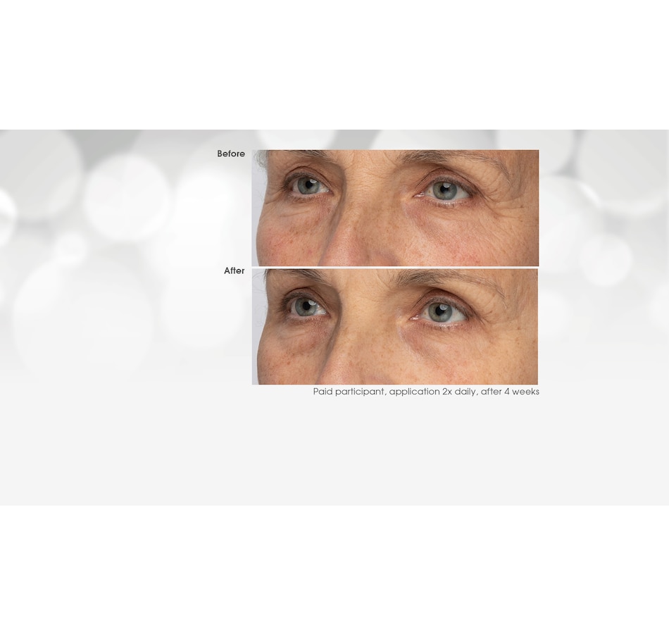 • Long-chain hyaluronic acid molecules provides immediate and intensive hydration to the uppermost skin layers, to help plump up the skin around the eye area