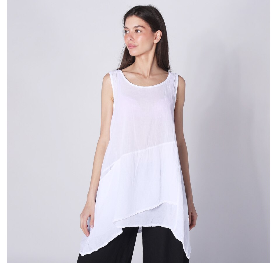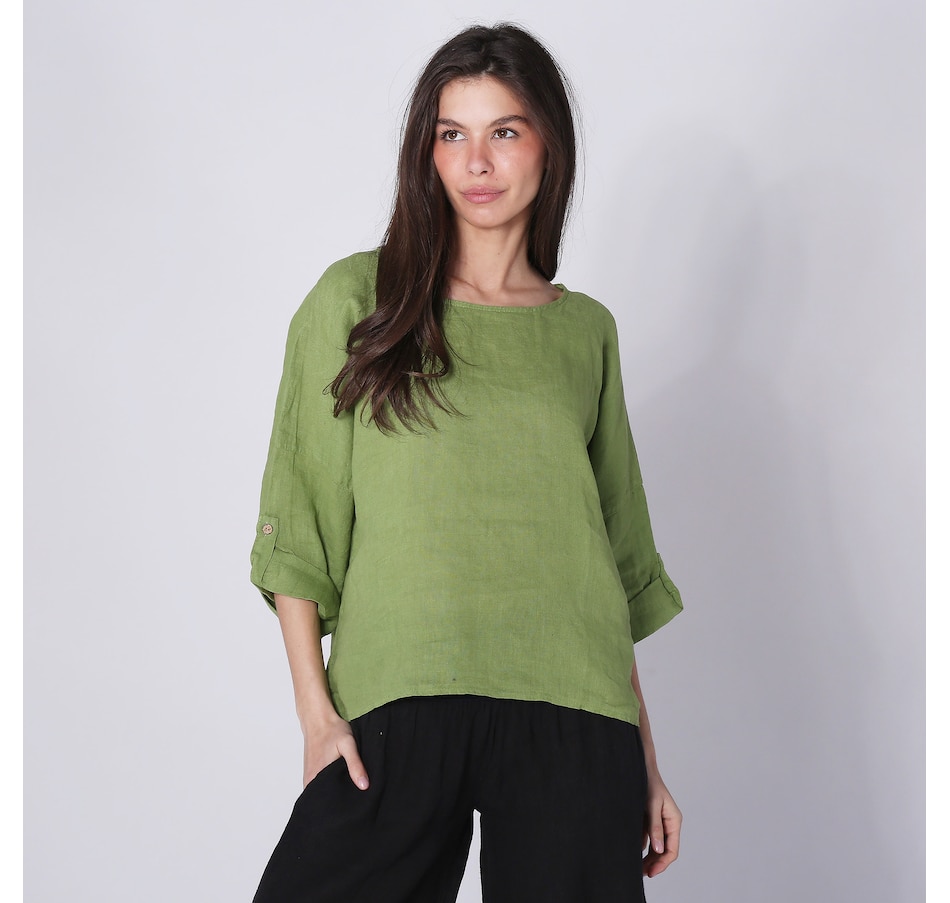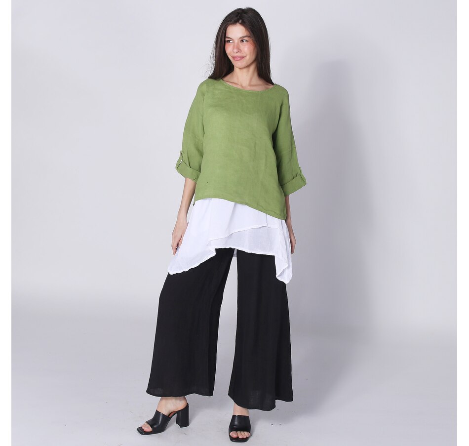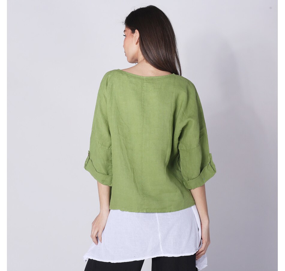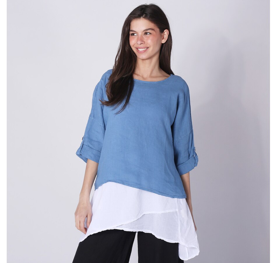 Get ready to finish your look in easy style with this chic layered roll tab sleeve top from M Made In Italy.