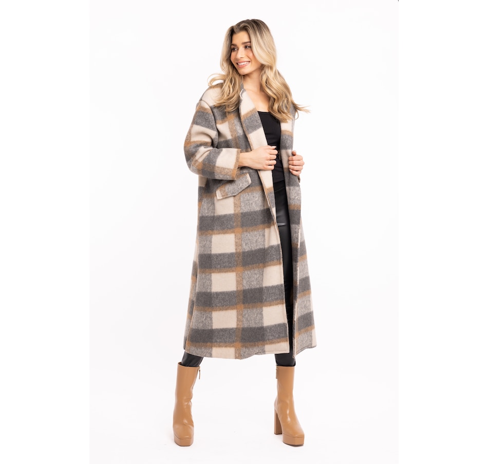 Add something classic and sophisticated to finish your autumn look with this plaid long sleeve coat from M Made In Italy.