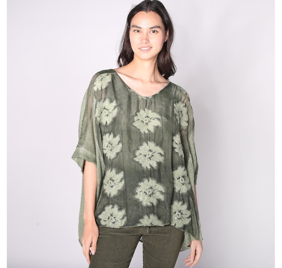 Centre your fall look in eye-catching style wearing this novelty stitch woven v-neck top from M Made In Italy.