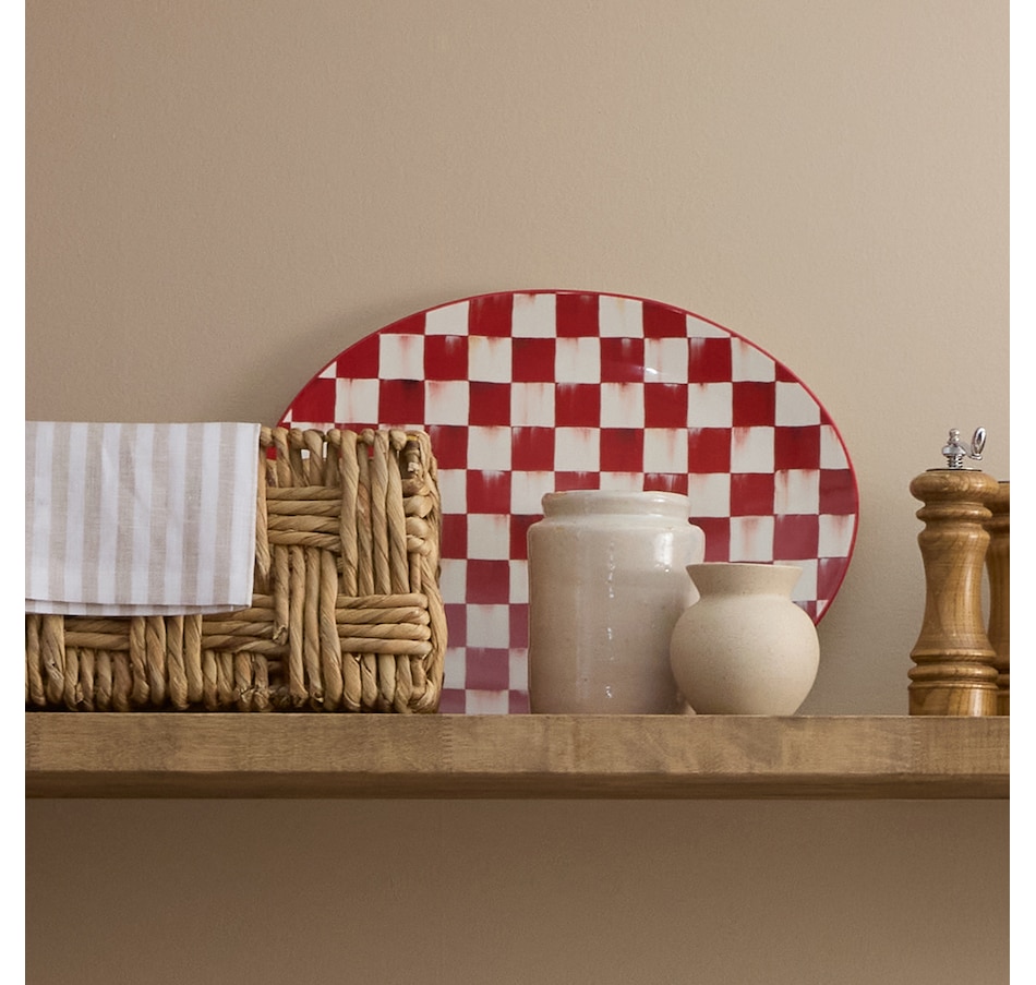 This Cherry Check serving platter is the 'cherry' on top of your table. Designed for everyday use, it is crafted from a durable stoneware that's both dishwasher and microwave-safe. Pair it with other Cherry Check stoneware pieces or mix and match it for a truly unique tabletop collection. Please note, these pieces may vary due to the handmade nature of each product.