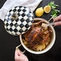 From stovetop to tabletop, this Courtly Check enamel 5 quart casserole dish transitions with more than a dash of panache. Imagine how your coveted casseroles will stand out when served up in a dish bedecked with this signature
