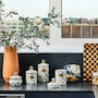 Flour, sugar, and coffee might seem the most obvious of contents with which to fill these canisters, but the possibilities are near-endless! Keep them in the kitchen with coffee beans and tea bags, cookies and candies, or dog biscuits and birdseed. You can even invent new uses around the house: ideal for cotton balls and swabs in the bathroom, pens and pencils in the office, or knickknacks and doodads in the kids room. Each enameled steel canister is hand-painted and topped off with a carved faux-cinnabar knob. They can stand alone handsomely or alongside one another in a set.