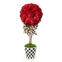 Add instant festive style with this small red topiary drop in. Resembling a lush hydrangea, this everlasting floral accent is decorated with a Courtly Check bow and set in a Courtly Check ceramic base. Display it as-is or drop in the Courtly stripe tabletop urn or the Courtly Check pedestal tabletop urn (both sold separately) for an elevated presentation. This piece is made of resin. Please note, these pieces may vary due to the handmade nature of each product.