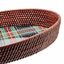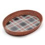 As handy as it is handsome, this large serving tray mixes an enameled black tartan base with woven natural rattan. It is made of heavy-gauge, hand-glazed steel tray base with hand-applied transfers, and rimmed in the aforementioned woven rattan. Please note, pieces may vary due to the handmade nature of each product.