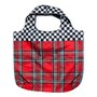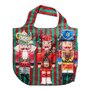 This ample tote, made of polyester, cotton with beadin, and printed with a nutcracker or tartan pattern, comes in handy whenever you need it. And when you don't, it folds up neatly into its pocket to stash in your purse. Please note, these pieces may vary due to the handmade nature of each product.